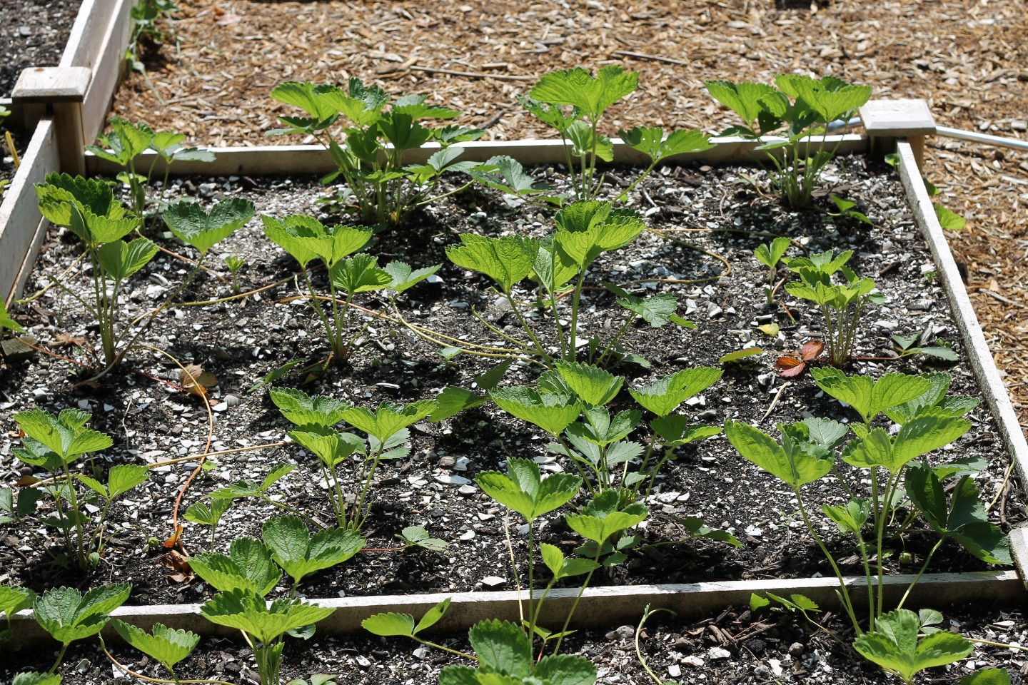 gooseberries , strawberries , some asian greens , radish and mixed lettuce just popping