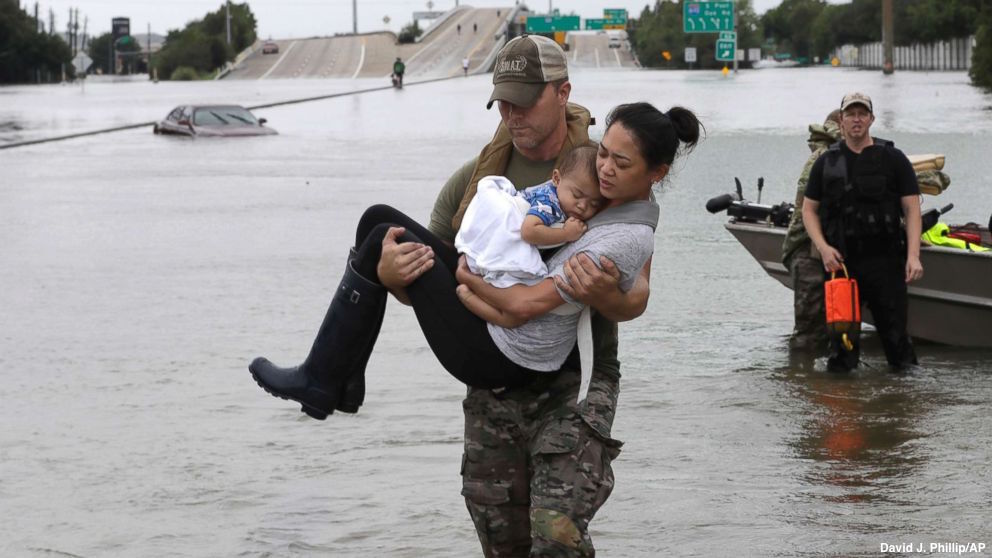 The liberal doomsayers who would have us believe that there is a racial divide in this country, or a gender divide, or any other kind of divide, are deliberately sowing the seeds of division for their own nefarious purpose. The next time anyone tries to sell you that particular bill of goods, ask that person to explain this photograph from the wake of Hurricane Harvey. It screams of love, duty, and quiet heroism. And it spits a huge loogey right in the face of much that is at the core of liberalism. When your ideology is annihilated by something so fundamentally human (a baby sleeping through a crisis, a loving mom holding the baby to her heart, and a strong man carrying them to safety), it's time to find a new ideology.