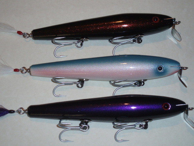 Mike great looking plugs love the spook .. I got Capesams one like that exactly almost .. Slip great plugs ,, I know they catch .. I seen you down there .. I'm making the Predators out of white pine .. love the stuff .. smells like christmas ,,, darters are hardmaple .. handcarves basswood and rock maple .. I have a love/hate thing going with ayc ..Great for plugs ,,bad for me .. been back in forth with it enough to know its the wood giving me headaches that I never usaully get .. I don't wear a respirator either .. just full face sheild to preserve my good looks ... I need more wood ... Off to Downes and Reader to give them all my cash and pray the tally man don't rob me too bad .