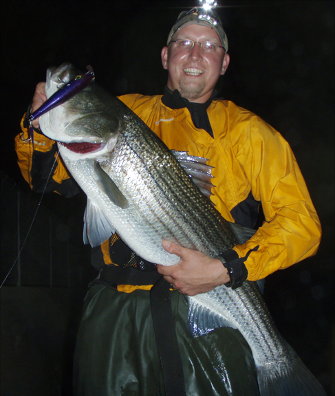 Nice job G. Beautiful nite. I spent the nite in the boat after work trolling tube and worm, a few blues is all i got at sunup. Very slow.