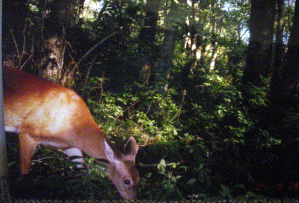 These pics came off the "Stealth deer Cam", its a 35mm infrared motion detector,,, 80$ at wally world. I had the cam on the edge of a swamp for 2 weeks. I just pulled the camera yesterday to find 12 shots about 5 different deer 3 of which where bucks. The camera lets you know the date or time of day the pic was taken. Personelly I'm useing the date for moon phase activity then as the season opens I'll switch over to time of day. Placeing your camera on trails near feilds has taken some nice pics of bucks while their still in feilds grazing but the down fall there is that it may be visable to other hunters. Once the acorns fall they'll be more active in hard woods. The cam runs on 8 AA batteirs....two words.... BLD#19. I placed it about three ft off the ground facing North, the sunlight can trigger the camera. This is a very valuable scouting tool.