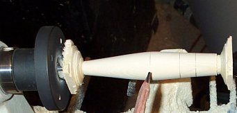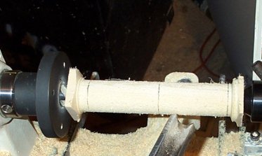 Charleston, I have two lathes. Dup is hooked up to the Jet. I turn freehand on the grizzly. The latter is what I use when working on something new. I sort of cheated for the photos  Forstner bits for the weight and swivel holes.