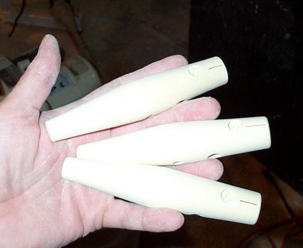 I stick a section of wire into the tail so I have something to hold while painting etc. The wire is crimped on the end inserted in the plug and bent over at the other end to allow for hanging the plug while drying.