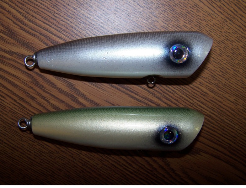 I was messing around w/ these....They cast Great and kick up a ton of water. Come in at 4.5 inches long and 2 oz. in weight.