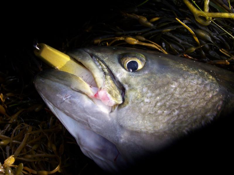 your epoxy may fail and your paint may wear off eventually but after you heat set the stuff it is very tough to get off and I can't imagine it washing off in any fashion. I still have it on my fingernails 3 days later and I wash my hands a lot a work. Here is a picture of a new plug that just saw this one blue. It ate right thru to the wood. The epoxy is still there and the paint too, just bare wood where he ate thru it. It was fished the rest of the fall and saw no further sign of deterioration. Plug is retired.