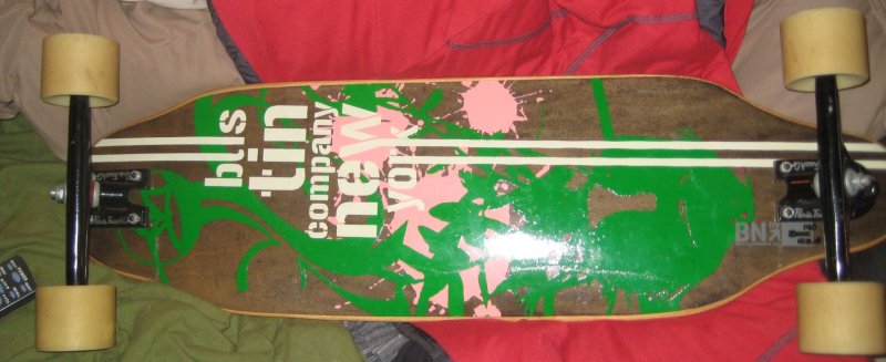This is a custom bustin boards long board, the model is the spliff. It has 180mm paris trucks and 68mm avalon 3dm wheels. Board is a dream to cruise; fast and can really fly through corners. New this was over $200 willing to let go for $100obo