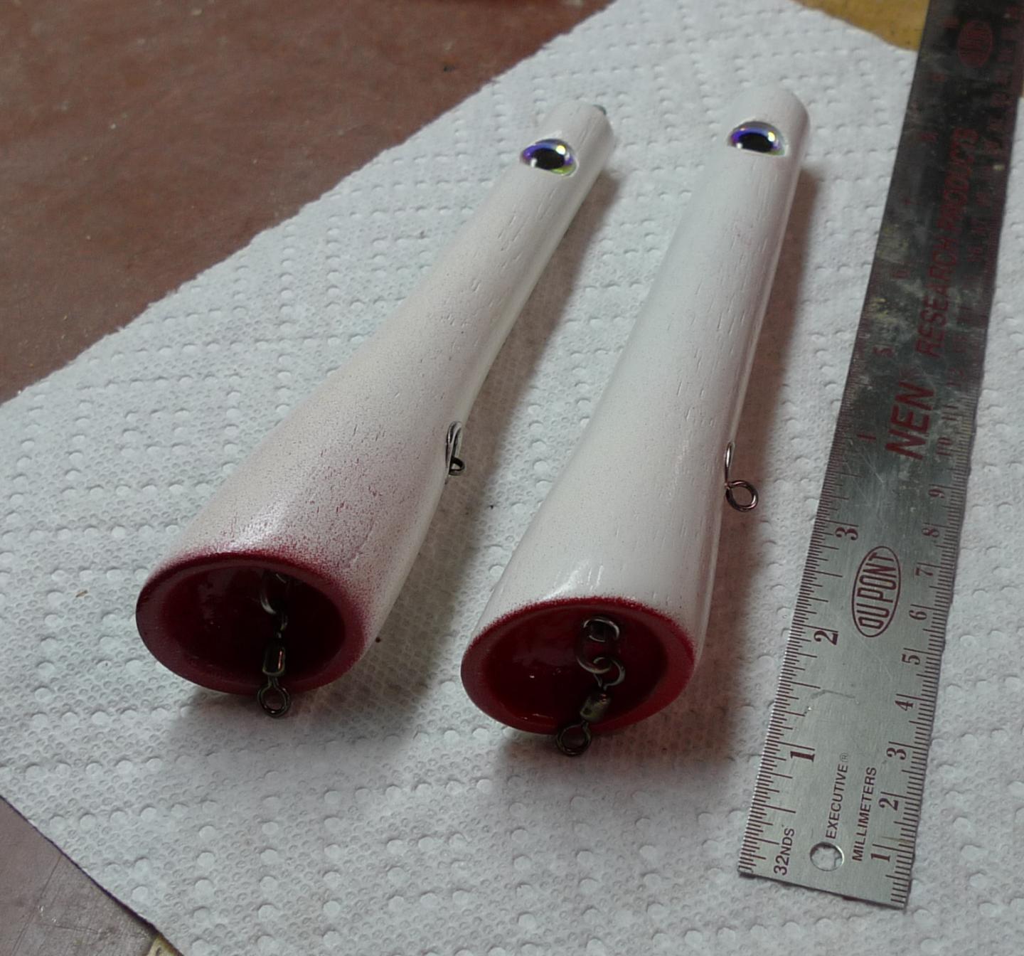 I made a few that are not true to the original design... I wanted to improve on the casting and added a 1/4 diameter tail wt that is 3/4 inch long and used std thru wire method. I added swivels in the line tie spot since the cups are so deep.