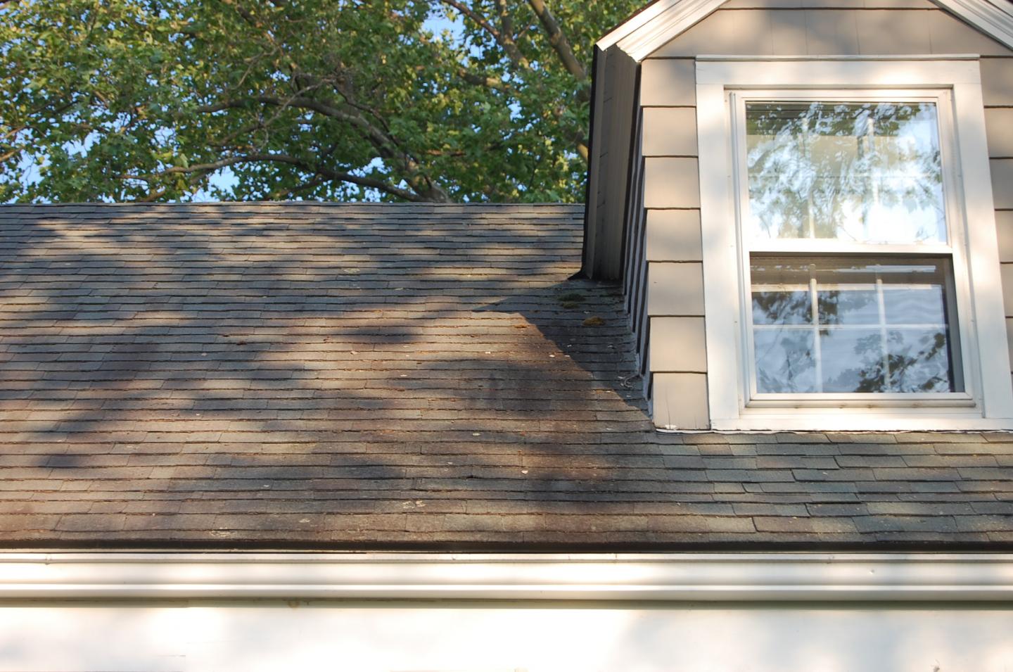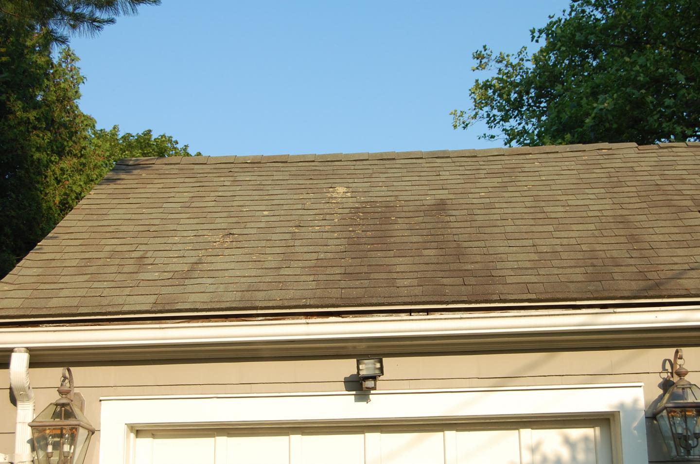 The 1st. picture is over the garage and you can see some yellowish moss along with the black mildew. The garage is a detached and unheated. The roof actually looks better now that I think of it. I should have taken pictures b/f I started