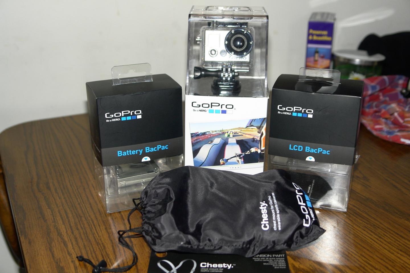 GoPro Helmet Hero HD, includes LCD Bacpac, Battery Bacpac, and Chesty chest strap...all new. $350. shipped