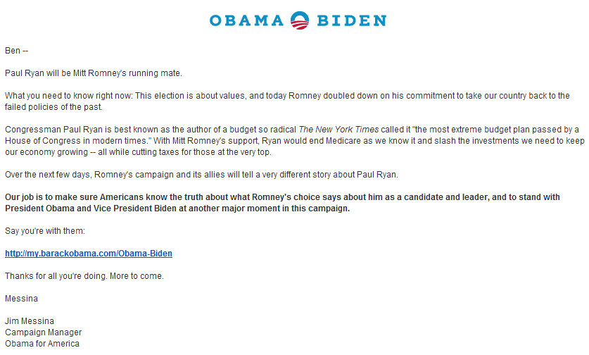 And Ryan's plan isn't going to resonate with the average voter. It makes massive supply side assumptions that are contradicted by even the last decade, and his plan for Medicare is terrible. Peg Federal contribution to inflation? That's just going to stratify the system and increase the cost of care...right back to where we started.