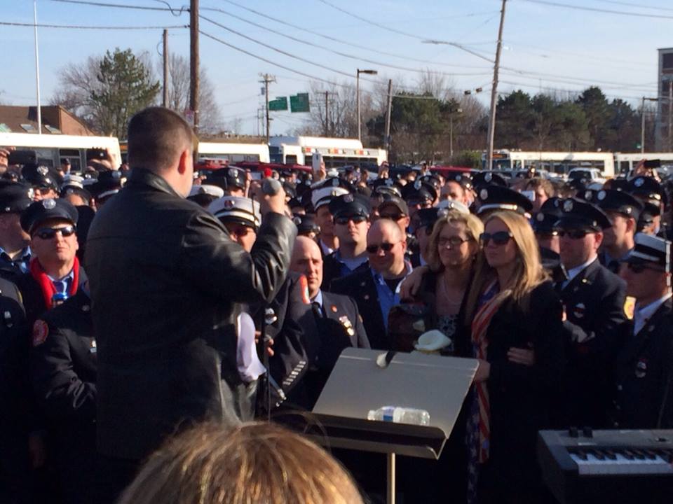 Today myself and about 60 other members of my department went to Boston to pay our final respects to Firefighter Micheal Kennedy. What an amazing job the Boston fire Dept did putting together a perfect tribute to a well respected firefighter. After the ceremony they extended the day over at Florian Hall (Local 718 union hall). When we arrived at the hall the Drop Kick Murphy's were all set up and ready to play. It was a cool tribute to Micheal.