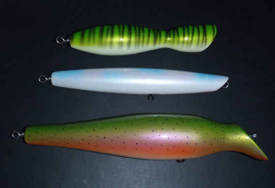 I hope iamskippy doesn't mind me posting these, but I just wanted to show three plugs he donated for auction at the Plum Island Surfcaster's 19th Annual Fishing Show.