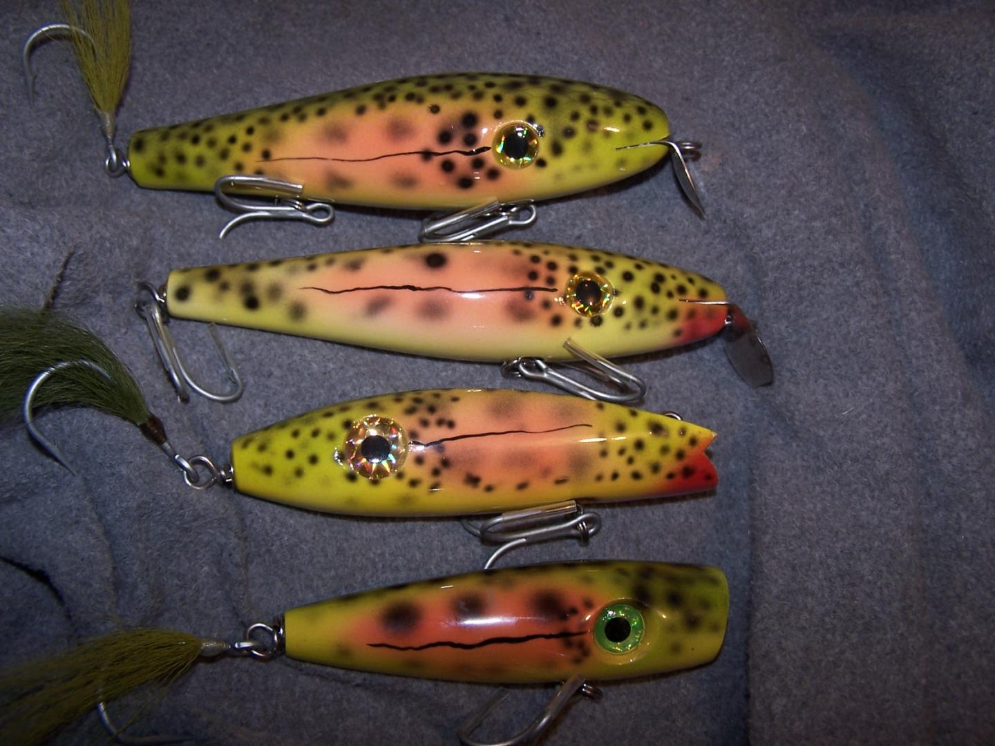 et tal: first is a lure made in surfster and topwater swimmer, cast a huge wake and sits lower in the water than lighter versions.