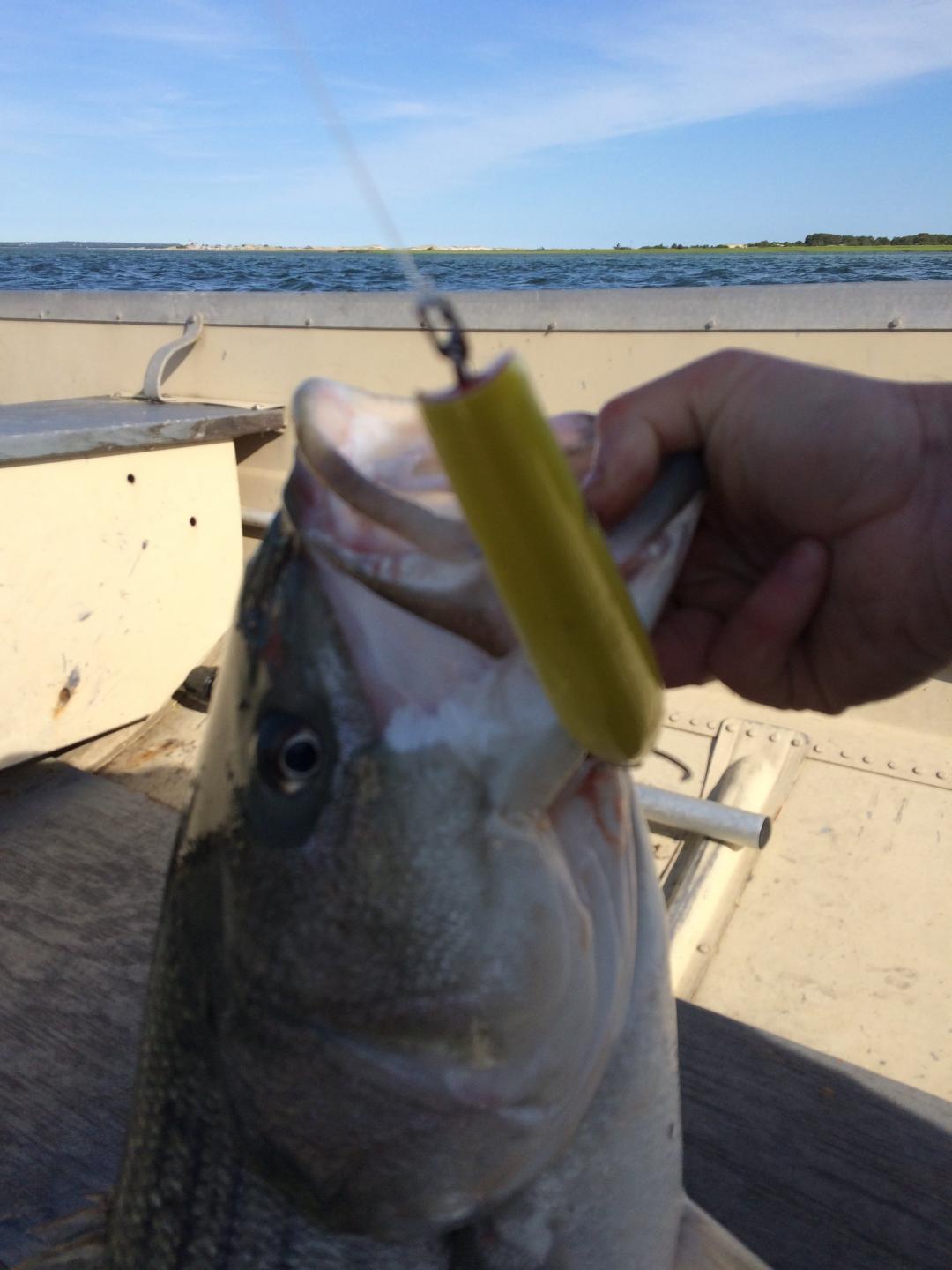 Here you go Dave a story. Here are a few nice size bass caught on a couple trips that I will remember for a long time. 2 on a medium gibbs copy pencil and one nice one on a lido flaptail. I was too busy fishing to take any more pics those 2 days a week and a half apart in the afternoon hours. Same conditions strong SW wind and blue skies and all by myself. last trip was just this past Monday, kind of late for this area, but a strong east wind the previous days got me to think I may have a repeat of week before so I headed right to same spot immediately. BTW I struck out this morning in same spot and tide stage. I think it is over there this year. Yellow and white seems to be the color this year. The day I got them on the pencil I had 9 fish to the skiff and several drops during one of the best top water bites I have ever had. Went on for 40 minutes and funny thing is I was 1 cast from leaving that day as I had exhausted all my honey holes as I followed the tide out and was ready to give up. I anchored up in my last spot and threw spooks for a few cast and was ready to pack it in, just not feeling it. Figured I would try making a bigger commotion so I put on the pencil for the last couple cast, something I usually don't use in this area mostly Howdys, and first cast the plug was smashed 5 feet into the air as I saw the 30 lb class fish come out of the water. I could not believe it. Not one hit all day and now large fish were fighting over the plugs. All these fish were caught in about 5 feet of water and all the hits, including the multiple misses were spectacular. I lost 3 plugs that day from broken leaders and a few straightened hooks. 30 lb leaders and light tackle just did not cut the mustard with that size fish and a ripping current while anchored. Next time on Monday I had 50 lb. leaders and fared much better. Large fish on plugs in real shallow water has to be the most exhilarating fishing one can have and 2 trips I will not soon forget.