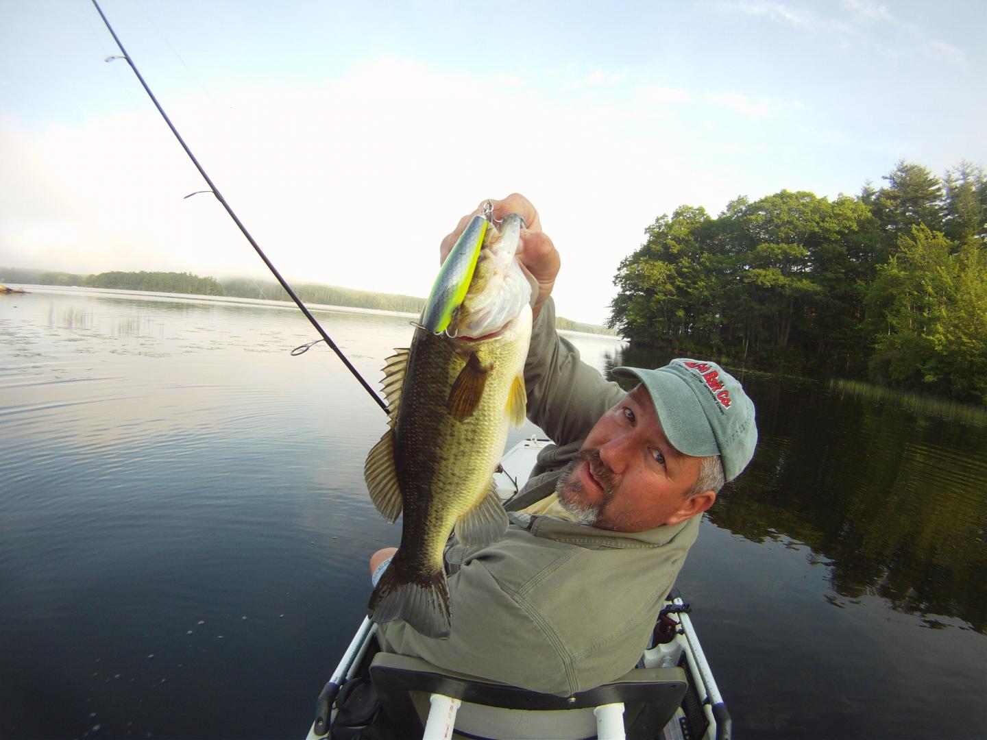 Nice 5 pound plus largemouth from my Damariscotta Lake vacation! It took my "Mayhem Minnow"......or should I say it took her!
