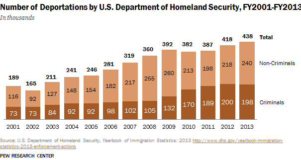 Obama counts people turned back at the borders as deportations and if the same person is turned back repeatedly the same day each attempt is counted as another deported person.