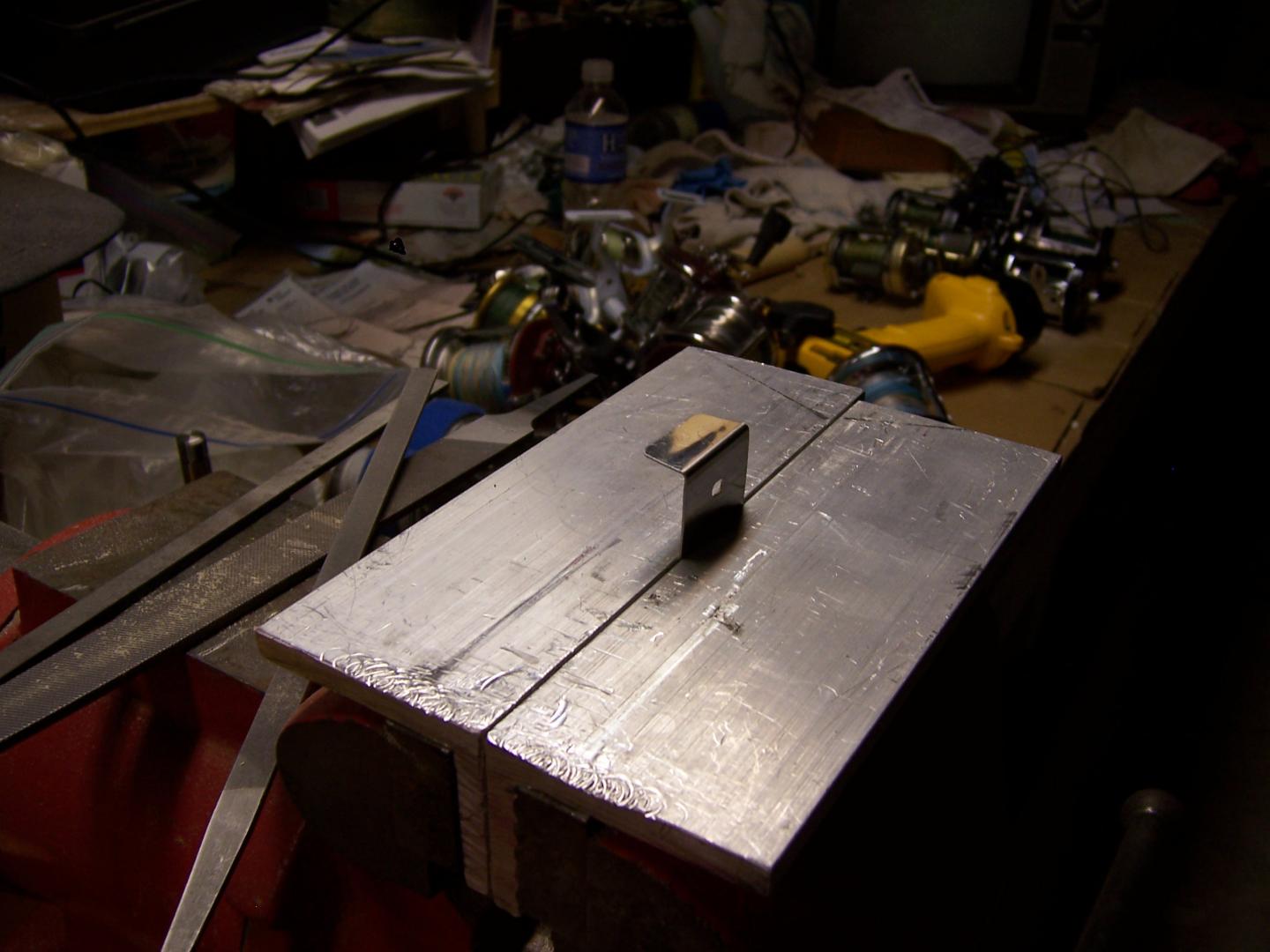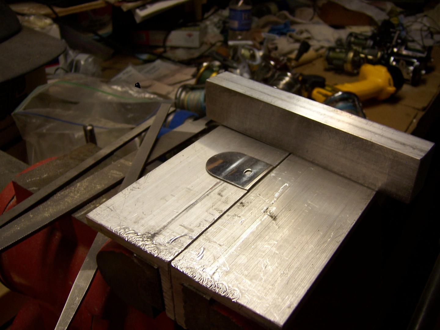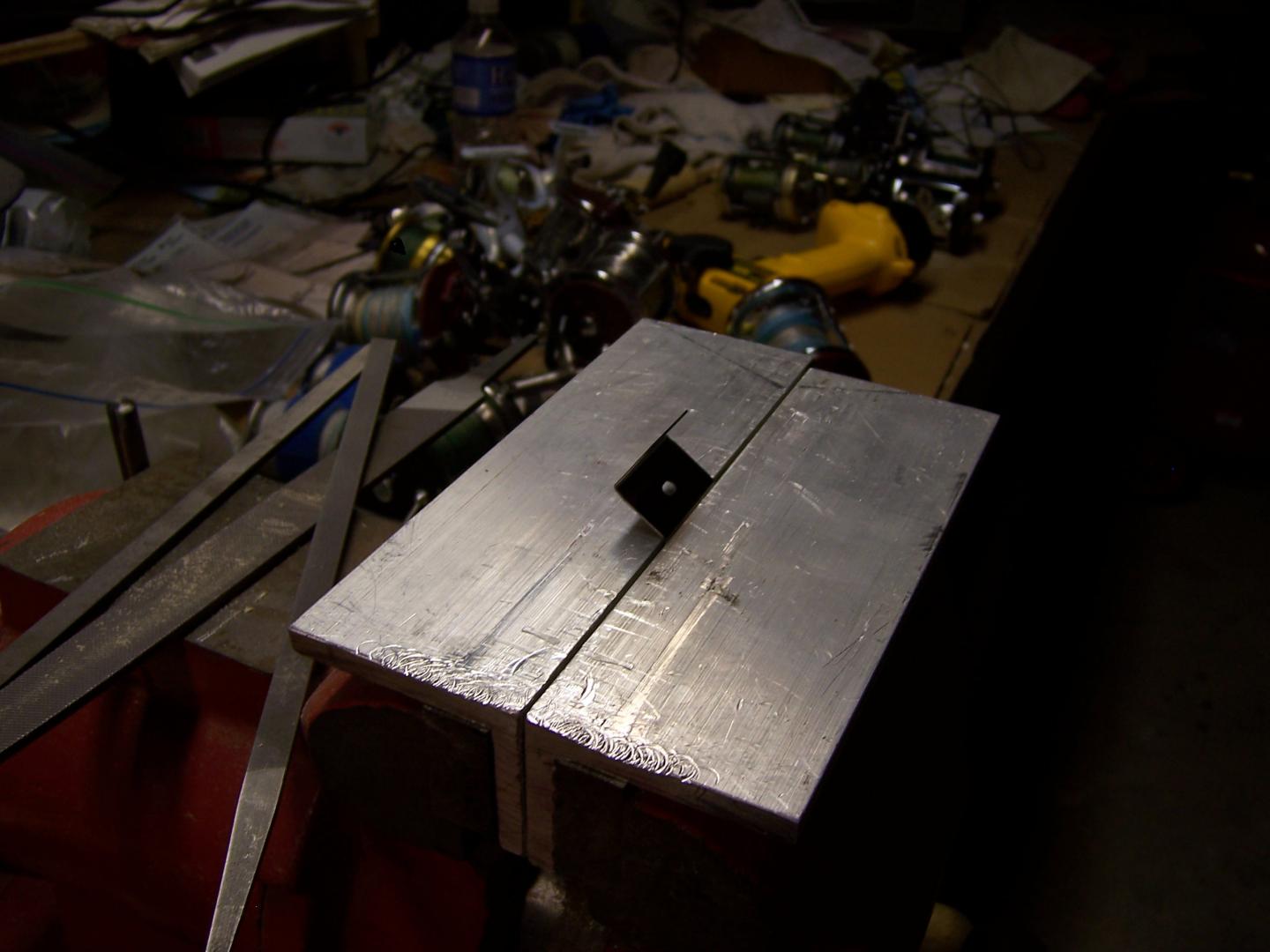 get some rt angle alum after lip is cut and sanded put in vise and bend back. Use a scrap piece of alum to flatten the lip against the jaws using a hammer and aluminum to hammer the lip flat. Take out flip put in vise and bend other way again use hammer and scrap alum.