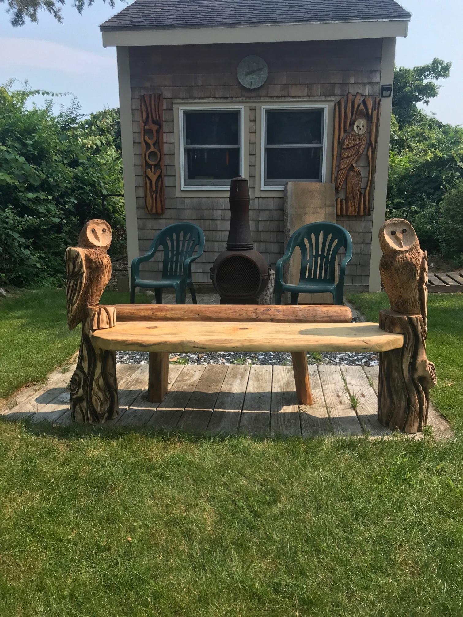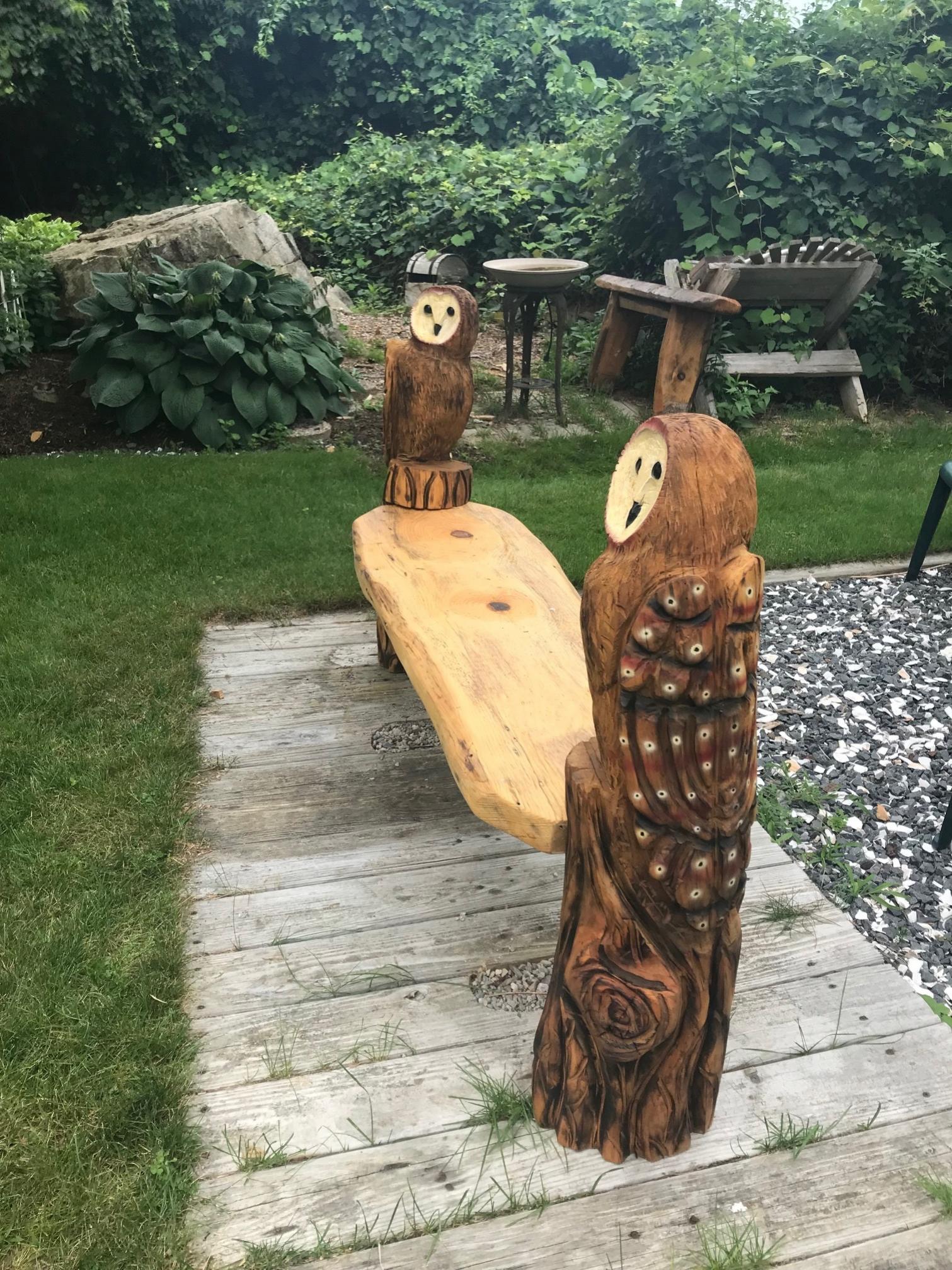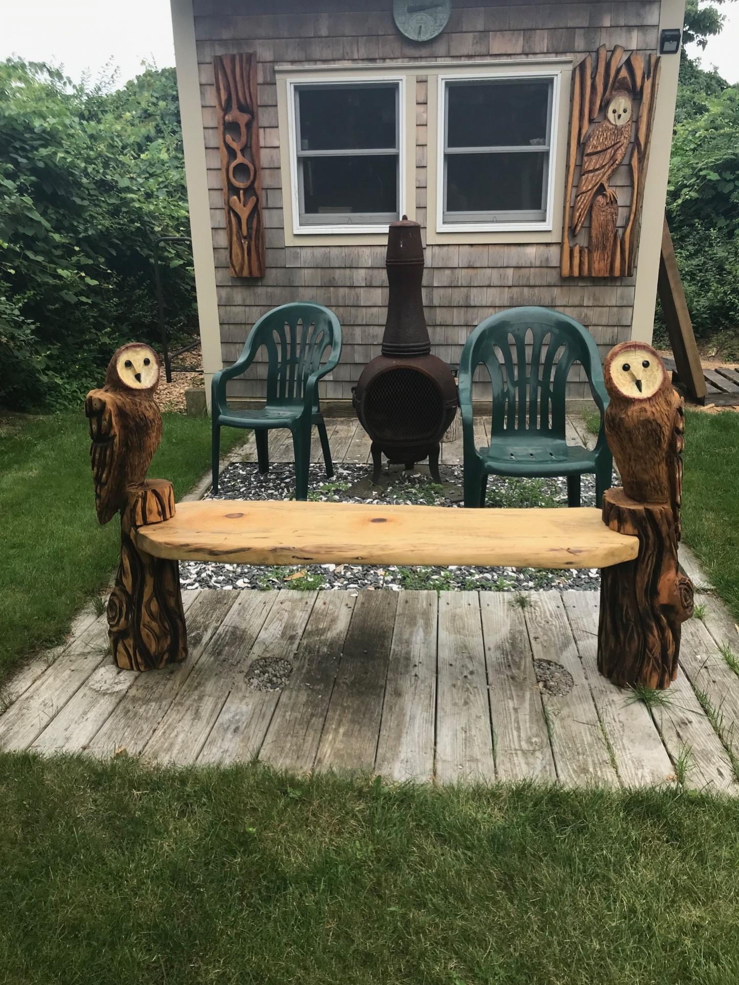 Barn owl bench is getting closer, ready for some paint and sealer, going to replace a quick bench I slapped together sitting behind it.